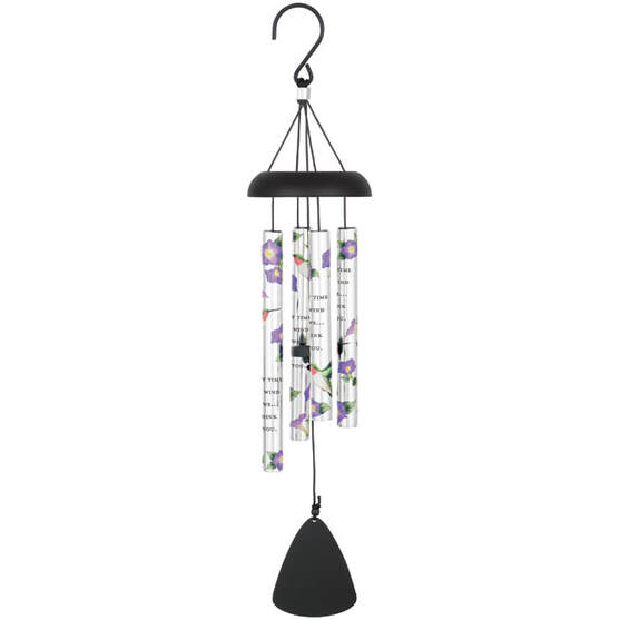 Our 21" Picturesque Sonnet Chimes feature powder coated aluminum construction and UV printed tubes with industrial cord. 4 heavy walled tubes that emit gentle tones that are pleasing to the ear. 3/4" Diameter Tubes - Adjustable Striker. Chime Tubes Read: "Every time the wind blows... I think of you."